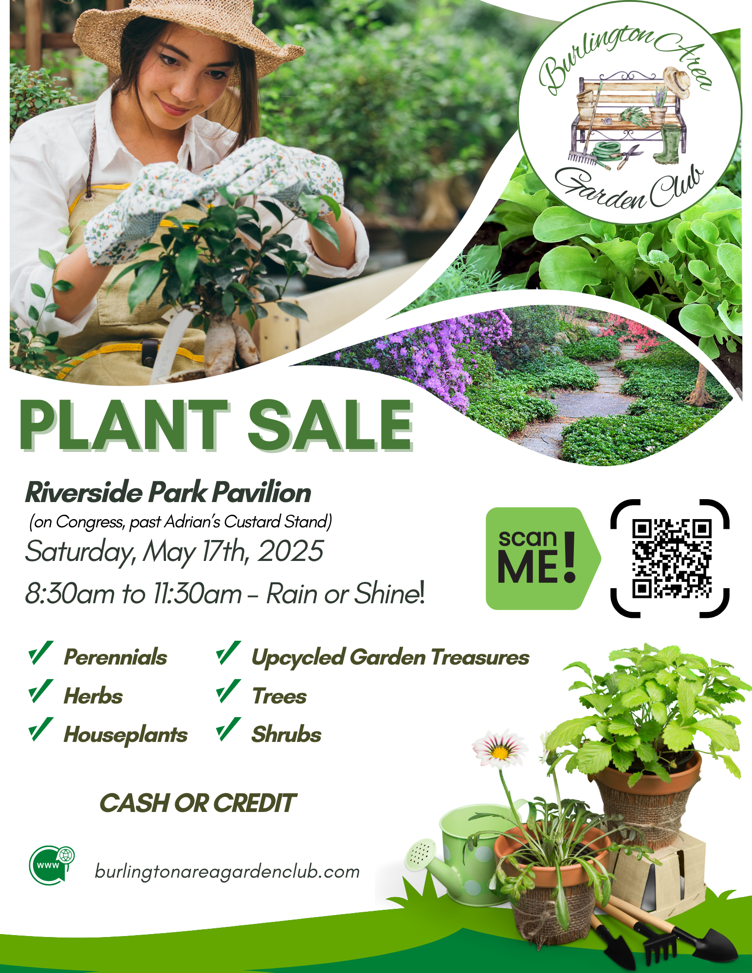 Locally grown plants from member's gardens will be for sale along with Garden treasures.