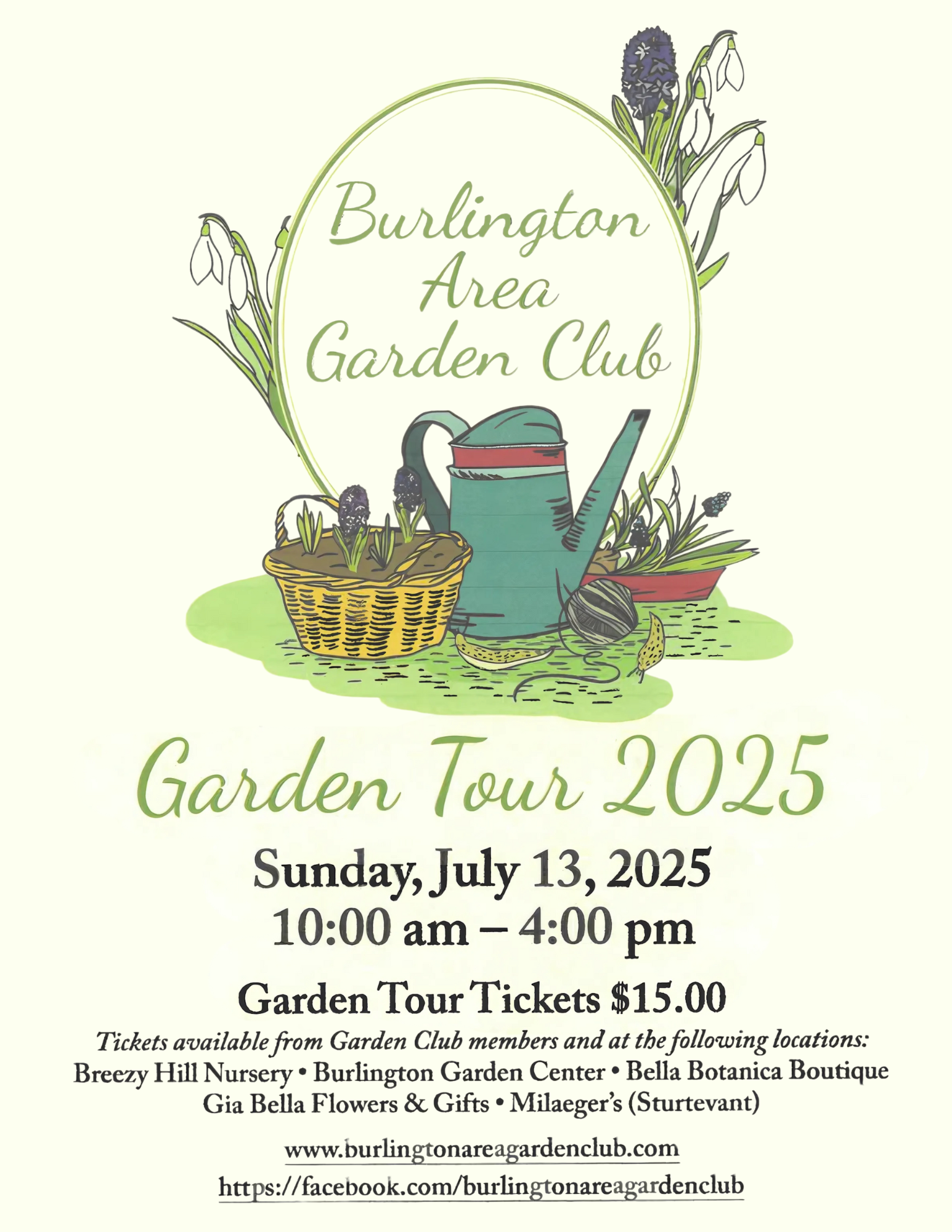 Garden enthusiasts are invited to view local gardens from the Burlington, WI area showcased during the Burlington Area Garden Club’s biannual Garden Tour in July. Proceeds from the Walk allow the Garden Club to present scholarships to students studying in horticulture-related fields at either the technical college or university level and also help fund grants awarded for local gardening projects.