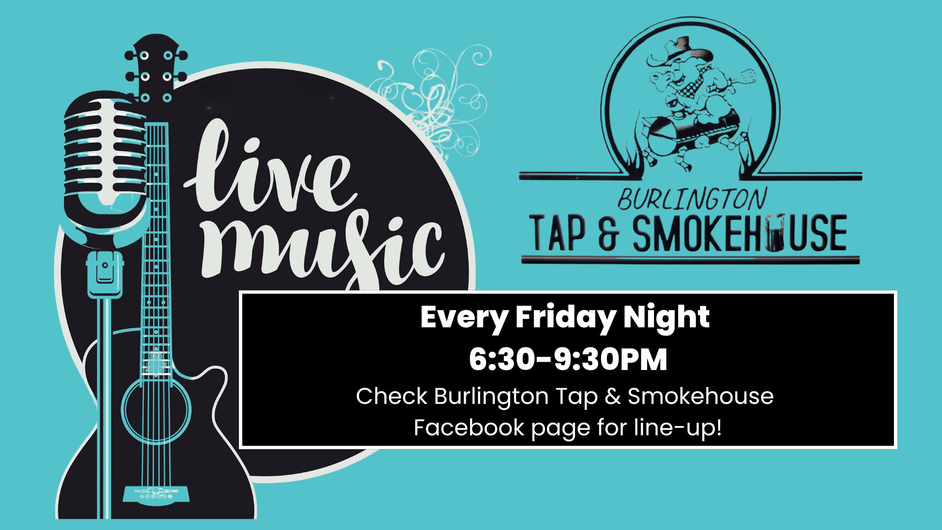Live music every Friday night from 6:30-9:30PM! Check Burlington Tap & Smokehouse Facebook page for line-up! https://www.facebook.com/profile.php?id=100041922712366Images