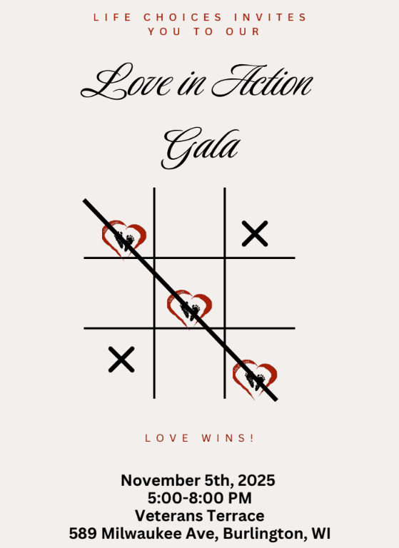 Life Choices invites you to our Love in Action Fundraiser. Come join us for a wonderful night of Food, friends and Fun as we hear stories about how this wonderful organization helps our families thrive in our community. November 5, 2025 5pm-8pm