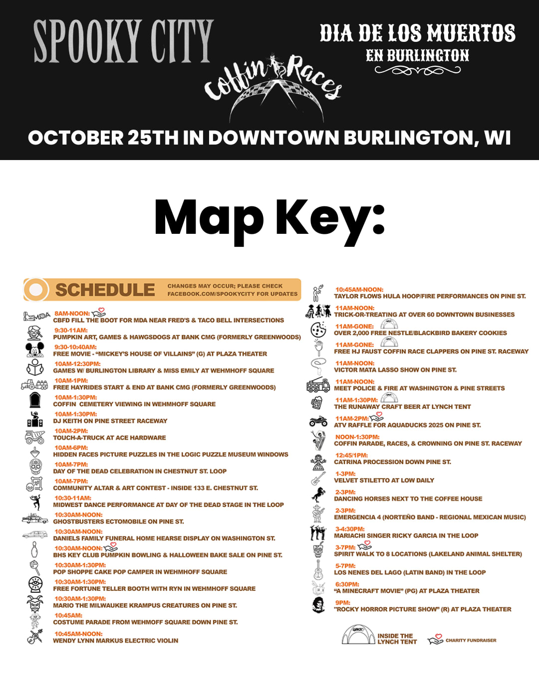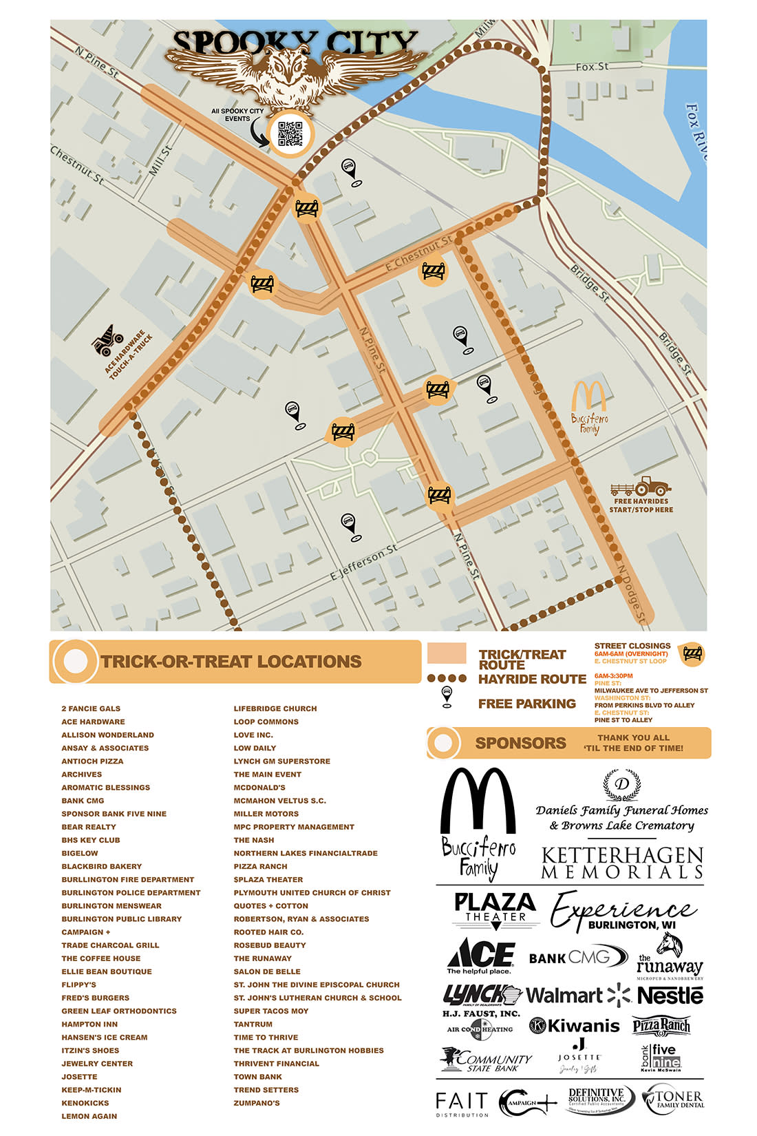 Annual Halloween quaint-yet-terrifying day of shenanigans in Historic Downtown Burlington WI.