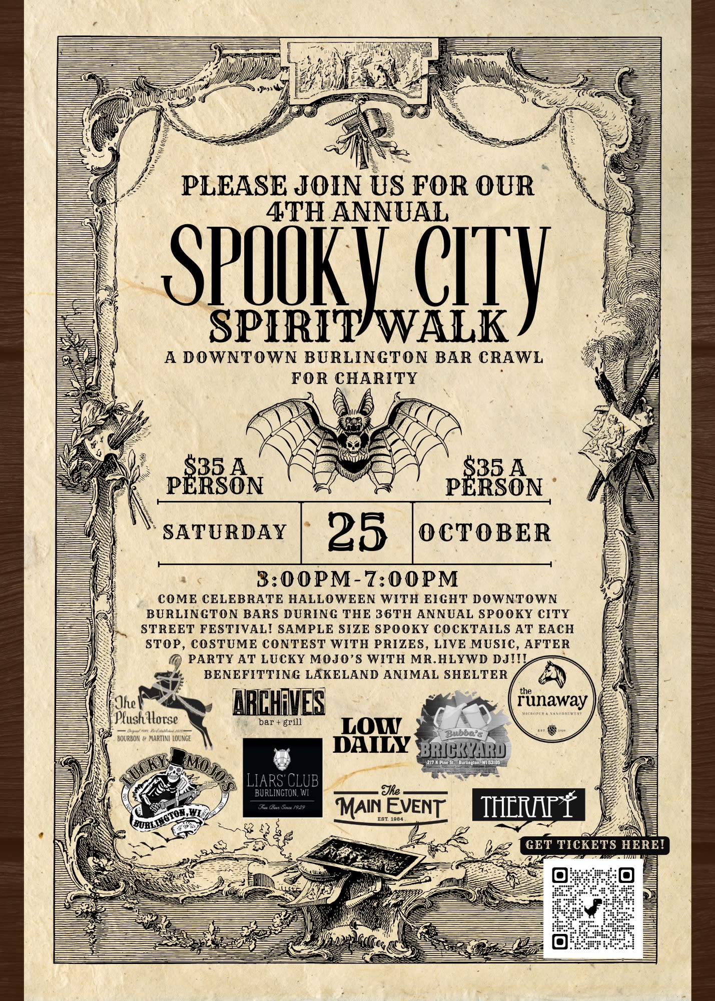 Spirit Walk (for adults) Tickets: www.archivesbarandgrill.com/shop