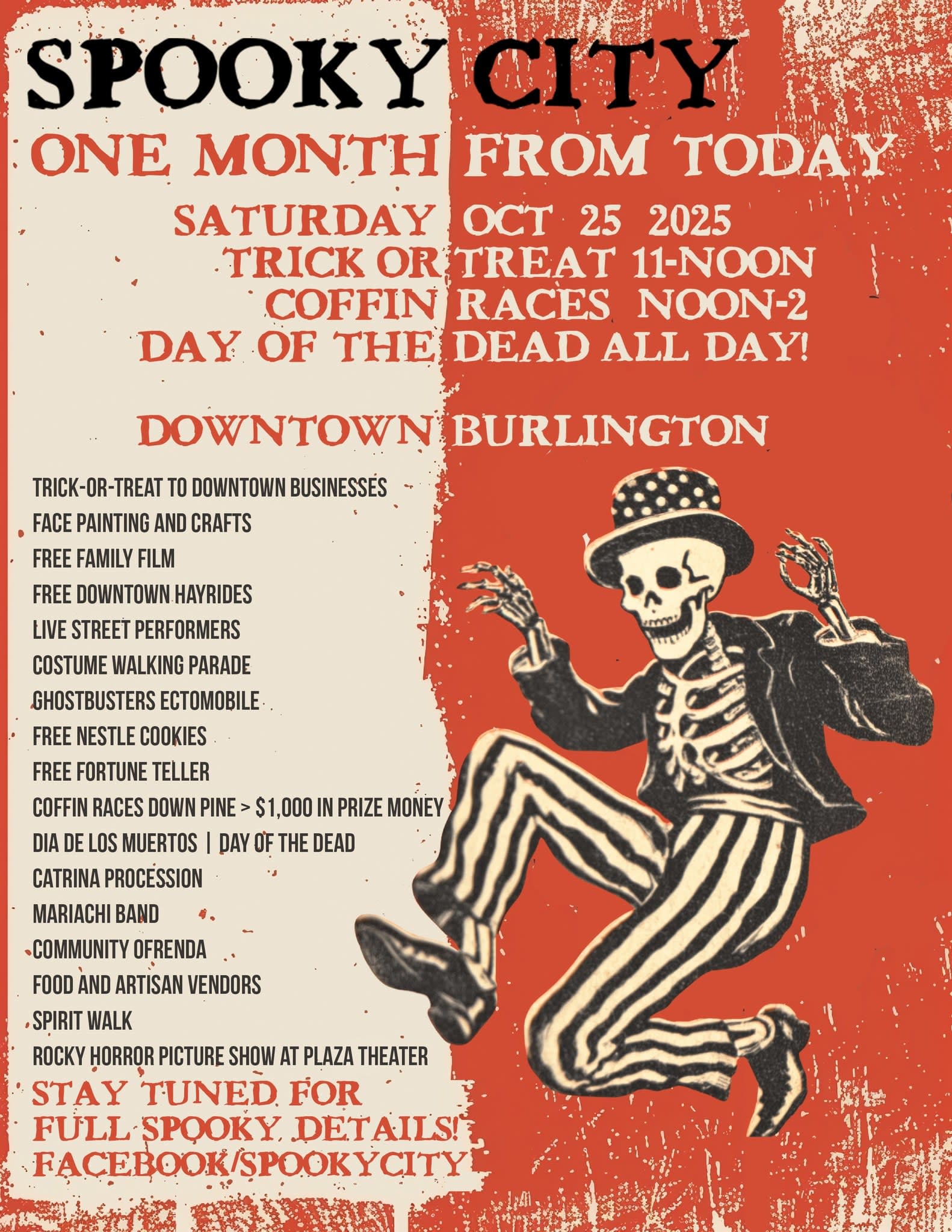 Celebrating 36 years of FREE family business to business TRICK-or-TREATING, street entertainers and hay rides, with 6 years of COFFIN RACE hooliganism and 3 years of enchanting Dia de Los Muertos celebration!